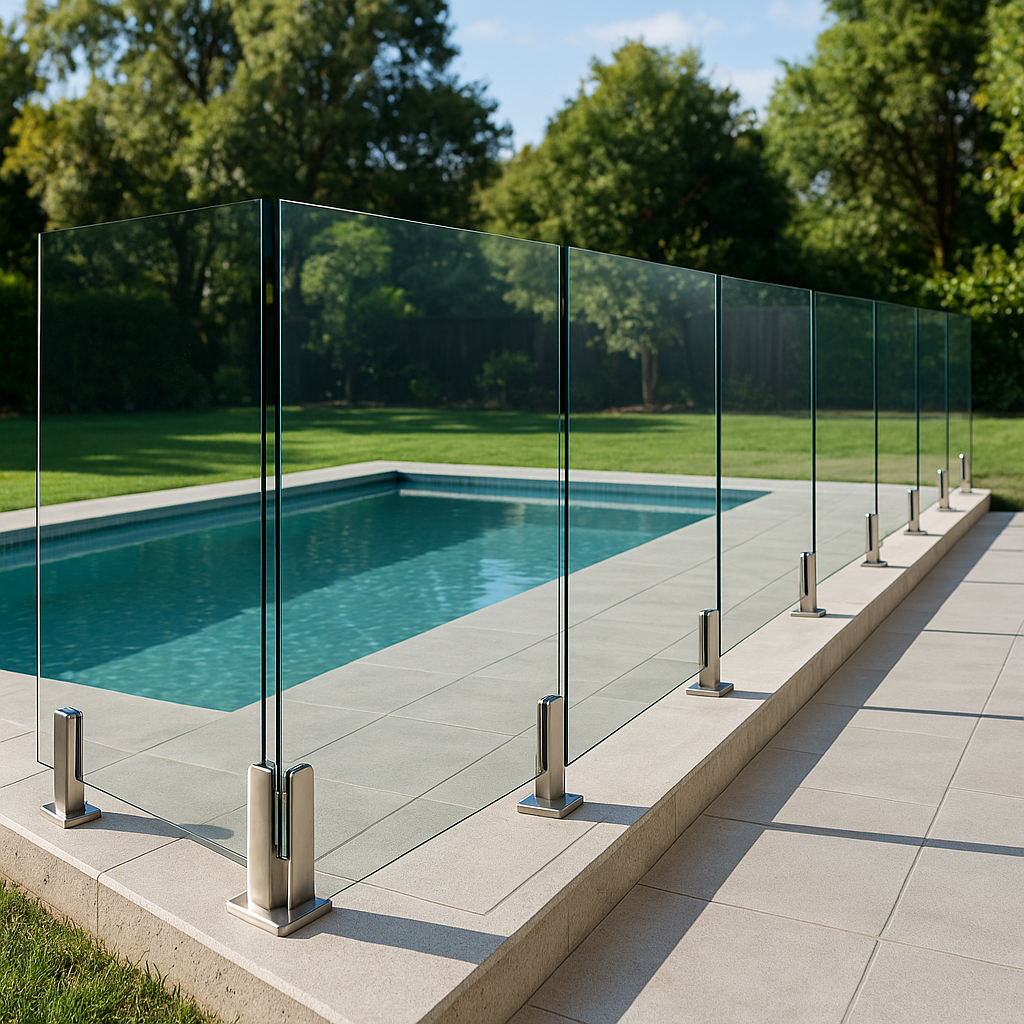 Pince à verre latérale inox 2205 – Finition Miroir / Satin / Noir – Réglable pour clôtures et garde-corps